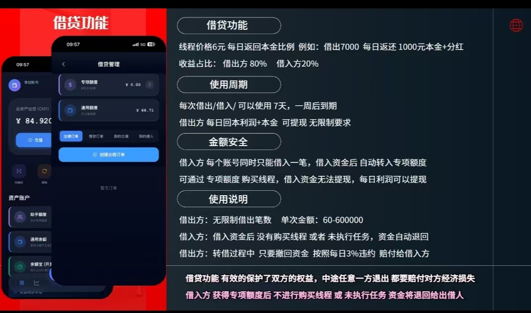 【零撸玩家,可以不用投资一分钱 ,在此起步,可以打开钱包向其他玩家借款,然后再去购买线程挂机】