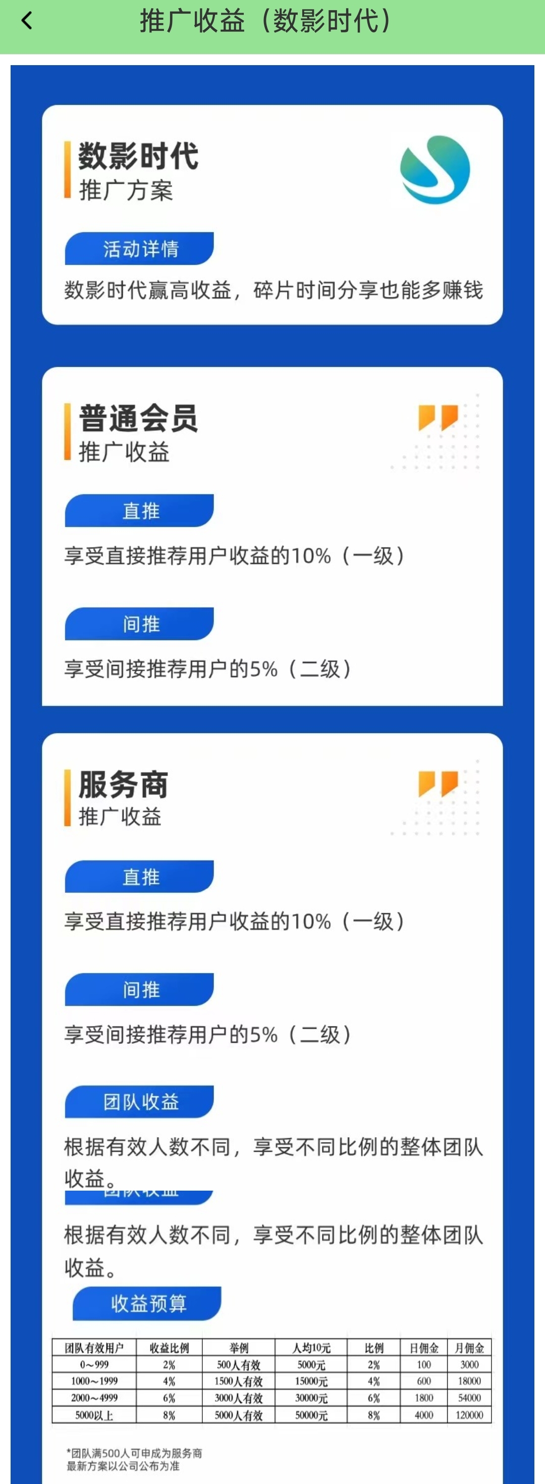团队达到500人,奖励[8]0.2元/天/人。