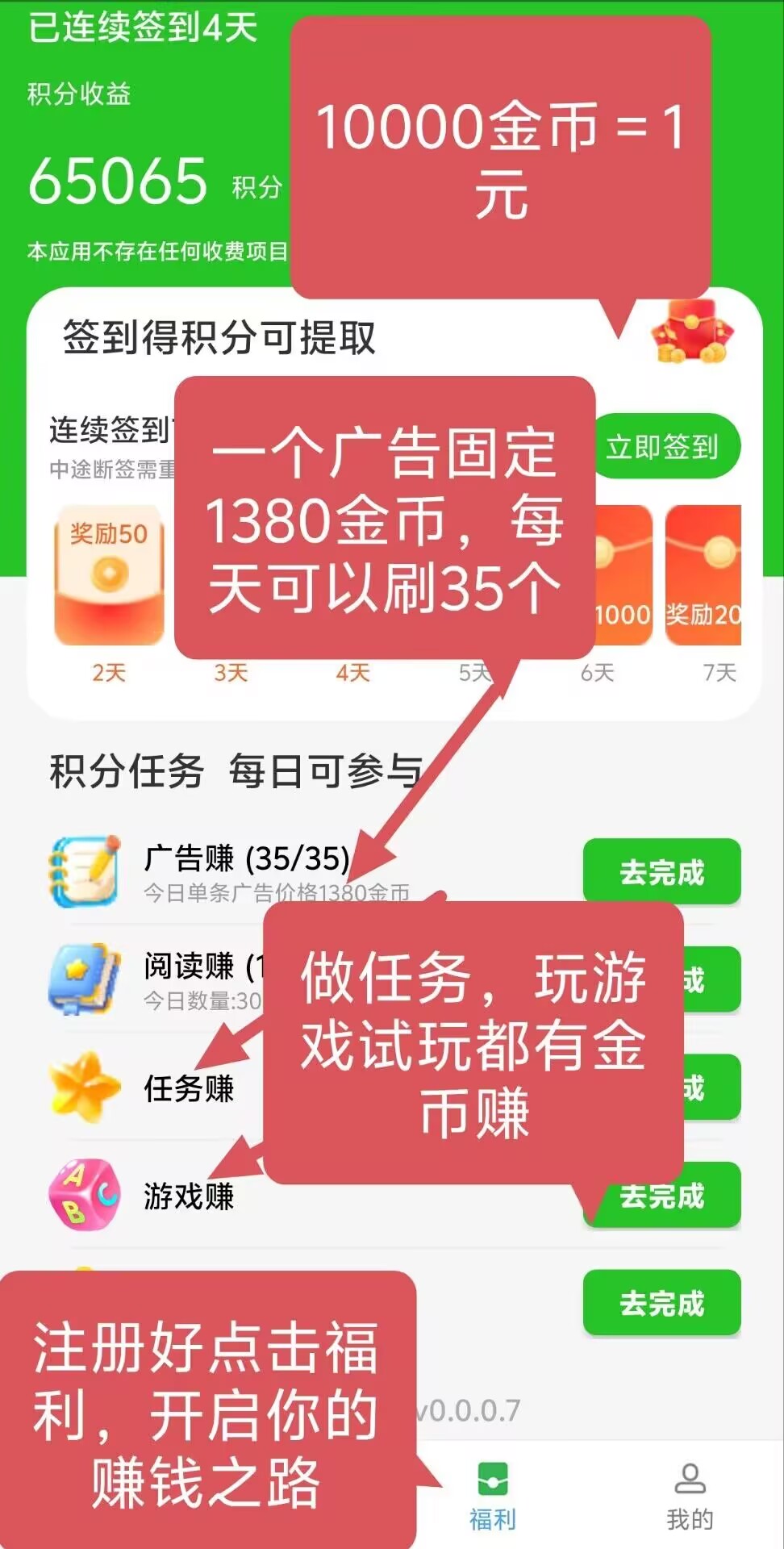平台设置的提现门槛仅为1元,8个广告即可达到提现条件。提现时间为早上9点到晚上6点,提现审核时间一般为48小时,金额越大到账越快,大额提现如100元已成功到账,用户可以放心操作。