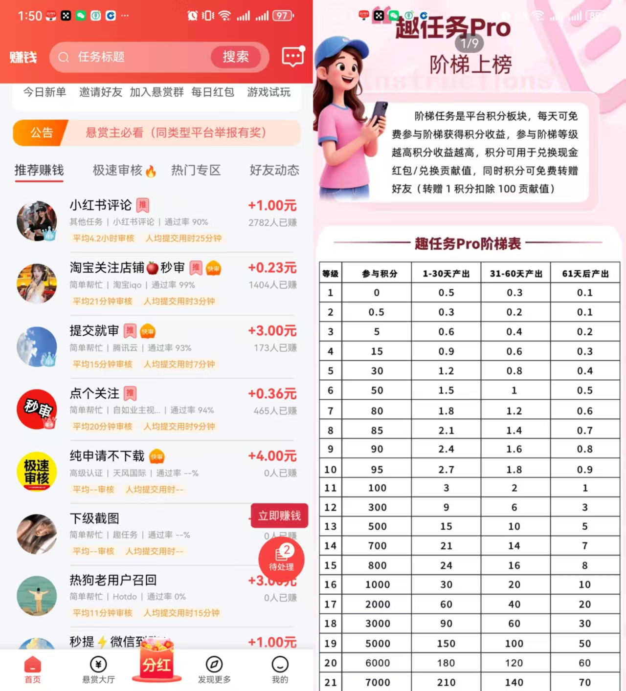 正文 趣任务首码上线:零门槛看广告赚米,团队奖励稳稳叠加! 芒果达人 V评论者 /03-19 /0 评论 /116 阅读 0319 温馨提示:文章均来自网络用户自主投稿,风险性未知,涉及注册投资需谨慎,因此造成损失本站概不负责! 首码零撸已上线🧵🧵💰长期稳定!新出爬墙加悬赏做任务玩法,推荐!1️⃣爬墙得积分:1积分=3米可兑换可交易,3月25日全阶梯开放悬赏拿佣金:每日排行前20,官方Q群打卡享每2️⃣日分红!无门槛参与,满1米秒提现分割线邀一人0.6元可免费发项目引流3️⃣邀请好友进平台,每个获得0.4元收益!如好友在平台消费,再得10%消费佣金!4️⃣升级成为代理,邀请好友进平台,每个得0.6元收益,好友消费再拿65%消费佣金!满10即可提现(⌐■_■)💰注册地址【趣任务Pro】拿着手机做赏金任务,在家躺赚零花钱服务V:MangGuoMoXiong投诉/删帖