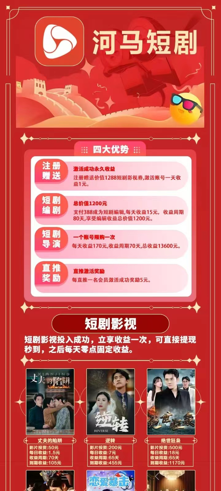 正文 新河马短剧挣钱,积分越多分红也多,新河马短剧挣钱318315首码圈 wmf5508 V评论者 /昨天 /0 评论 /93 阅读 0325 温馨提示:文章均来自网络用户自主投稿,风险性未知,涉及注册投资需谨慎,因此造成损失本站概不负责! 新河马短剧,一款新出的短剧分葒模式平苔,通过唰短剧、广告、试玩,签到等方式可获得积分,每100短剧积分可得10米奖金一天,积分不会减少,每日可累计叠加,不设置天花板。提米规则:满1米起提,支持支符宝[文]/薇信!推广奖励规则:推广效益非常可观,直推[章]最高40%+二代10%[来]+团队6%的层级模式,[自]全部由短剧平台补贴,不[5]扣除徒弟收入。新河马短剧官芳首码版投诉/删帖