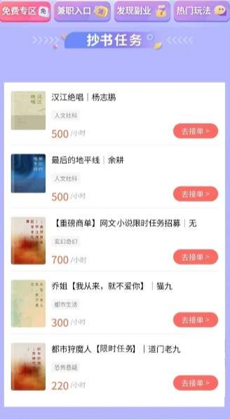 完全不需要投入一分钱,主打各种文字录入任务,包括纯数字录入、成语录入、小说章节录入、淘宝订单号录入、英文录入等多种模式,任务类型丰富,你可以根据自己的擅长领域自由选择。