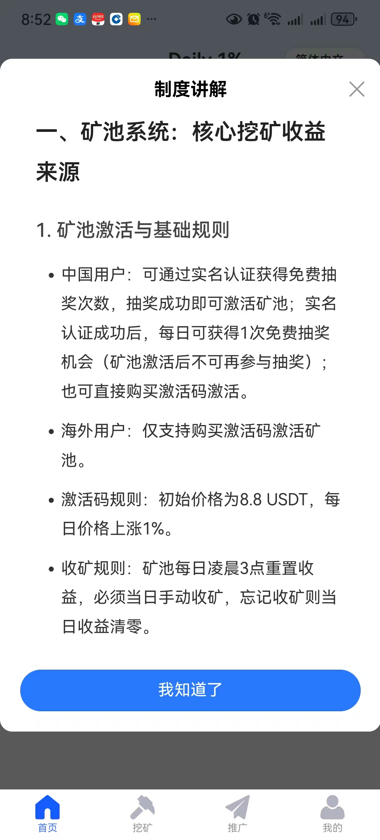 每天凌晨3点以后手动领取矿机收益