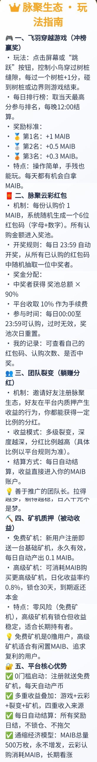 零撸【脉聚生态】刚上线!矿机模式,一个币MAIB=价格1.1油