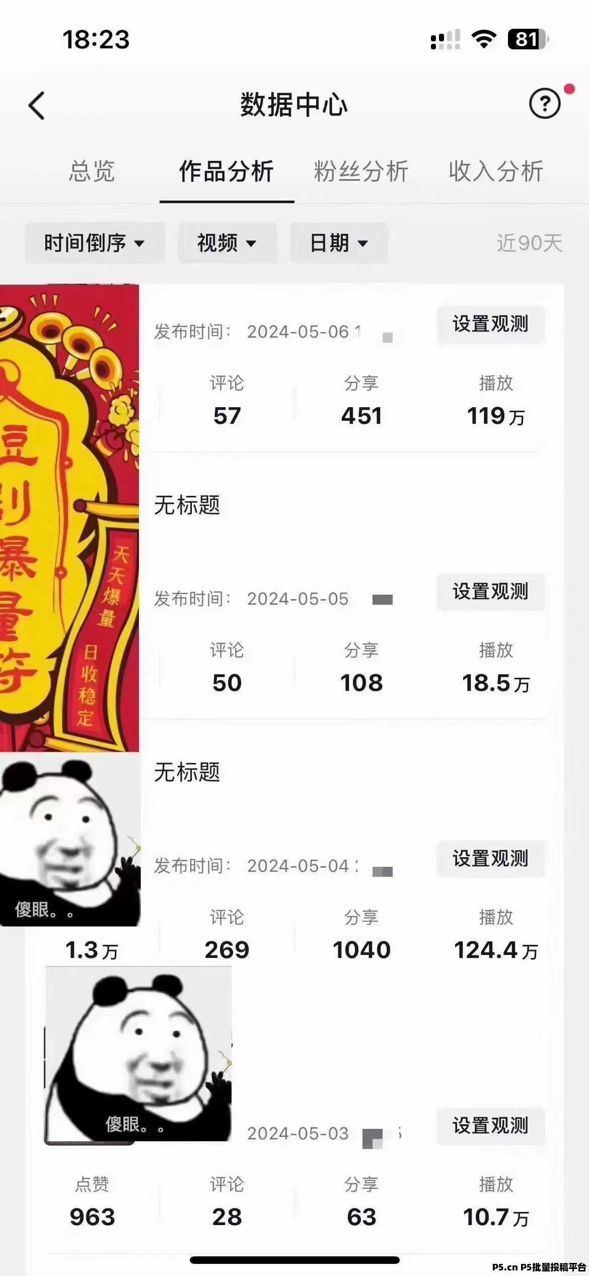 目前各个平台都陆陆续续的开放了创作者分成计划, 有播放就有收益,如果你也想分一杯羹,抓住这些风口,那就脚踏实地的开始行动吧!