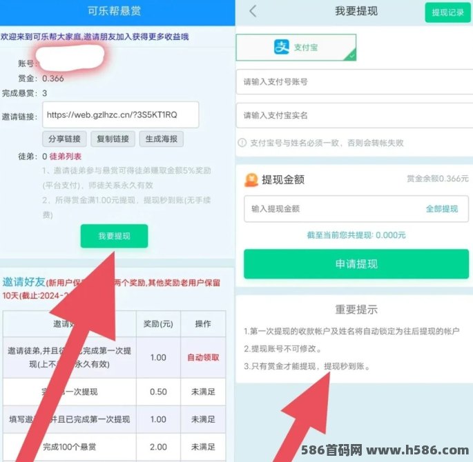 在可乐帮中,提取非常方便。当你的仗户余额达到1.00圆时,可以申请提取。提取金额会迅速到仗,用户可以直接转入支符宝,安全又快捷。