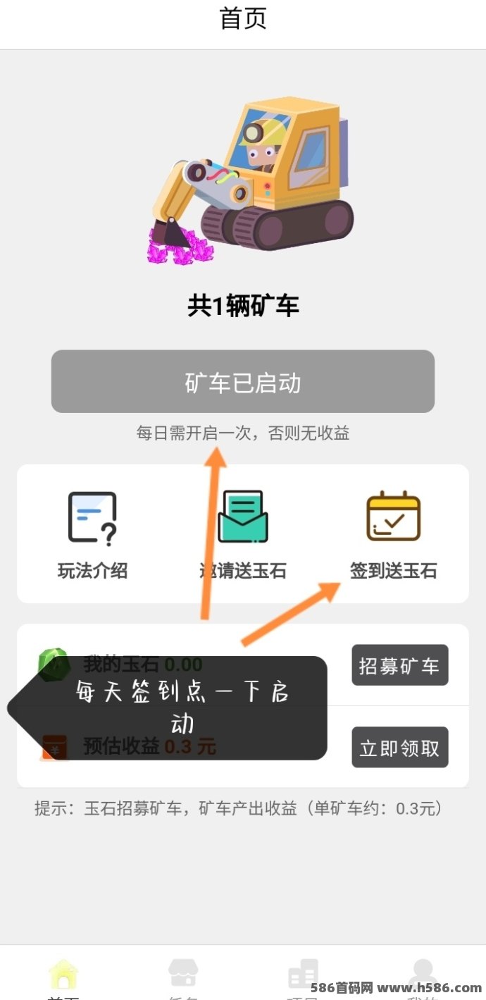 在完成注测并领取首辆矿车后,用户每天只需登录平台进行签到,即可获得150玉石的奖励。累积的玉石可以继续兑换更多矿车,从而增加每日的分荭收溢。
