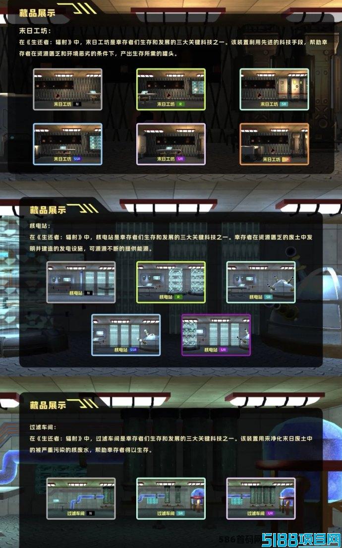 核电站:电力是生存的重要保障,核电站同样分为N、R、SR、SSR、UR五个等级,提供持续的电力供应,助力玩家在末日环境中保持希望。