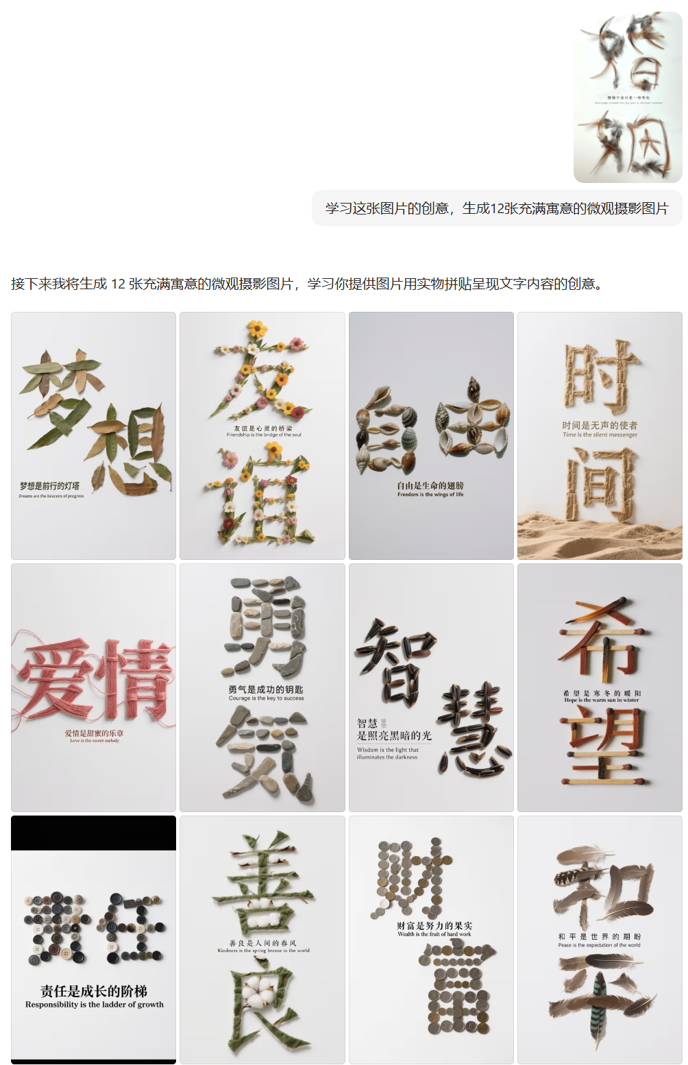 学习这张图片的创意,生成12张充满寓意的微观摄影图片