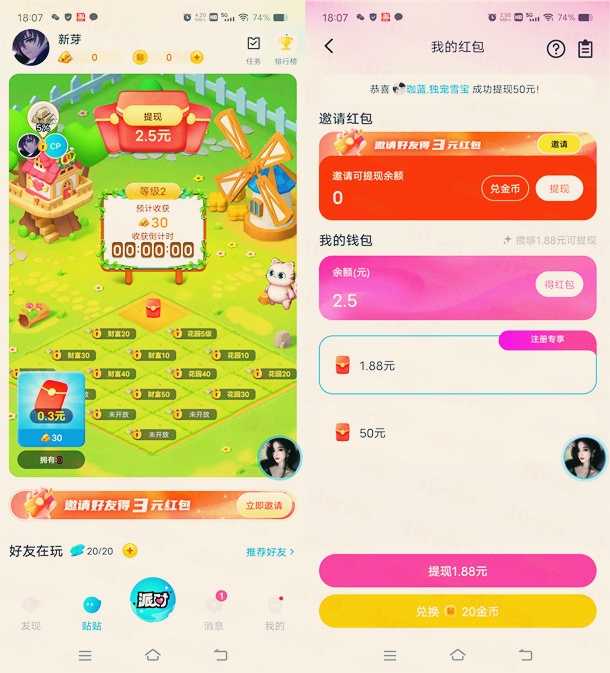 正文 贴贴APP简单领取1.88元微信红包,亲测秒推微信零钱 5188 V管理员 /昨天 /233 阅读 1010 贴贴APP的一个简单的领1.88元红包的活动,下载贴贴APP,手机号码登陆后,点底部【贴贴】随便升级点几下就行,然后会送3元左右红包,直接提现1.88元到微信,提现后目前秒推,提现需实名,如果之前注册过的是没有1.88元提现选项的。手机扫下面码进入活动:活动时间:结束日期未知进入活动页面下载打开“贴贴”APP,手机号码登陆,点底部【贴贴】随便升级点几下就行,然后直接提现1.88元到微信秒推送,提现需实名,如果之前注册过的是没有1.88元提现选项的。投诉/删帖