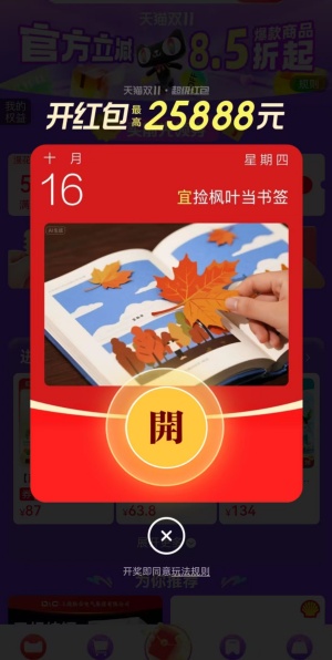 淘宝双11超级红包必中最高25888元现金红包,每天可领
