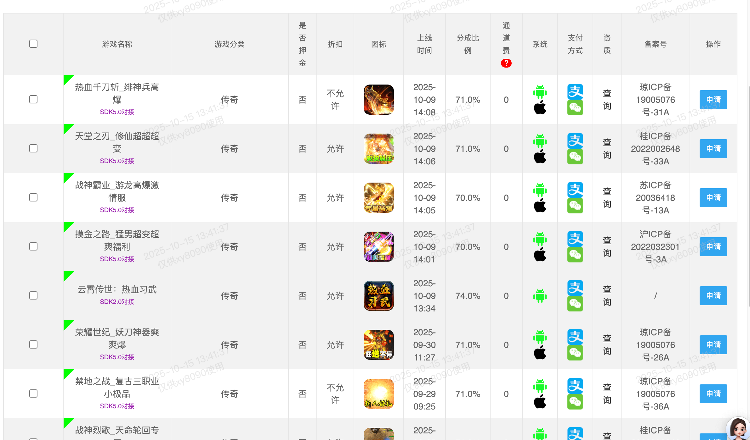 独立的申请游戏后台,挑选您喜欢的游戏!独立的结算系统!!!!!!提现无需申请!