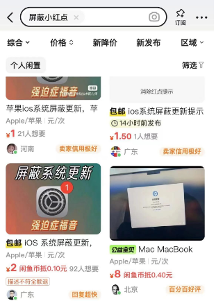 价格从1元到6.6元不等,差价之大令人惊讶!我又在二手交易平台上看了看,那里的价格通常在1元左右。对于安卓用户来说,可能难以理解,为什么会有人愿意为关闭这个小红点付费,直接更新系统不就行了吗?或者自己动手不行吗?